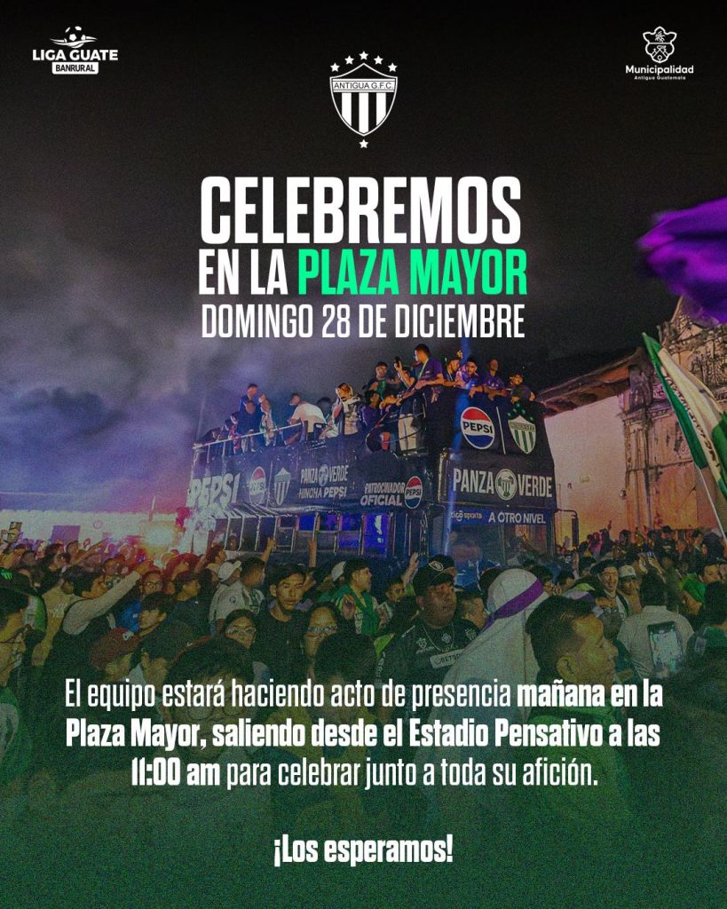 - Antigua GFC se impone 2-1 en el marcador global de la gran final del Torneo Apertura 2025 a Municipal y se corona por segunda vez consecutiva como campeón del fútbol guatemalteco.