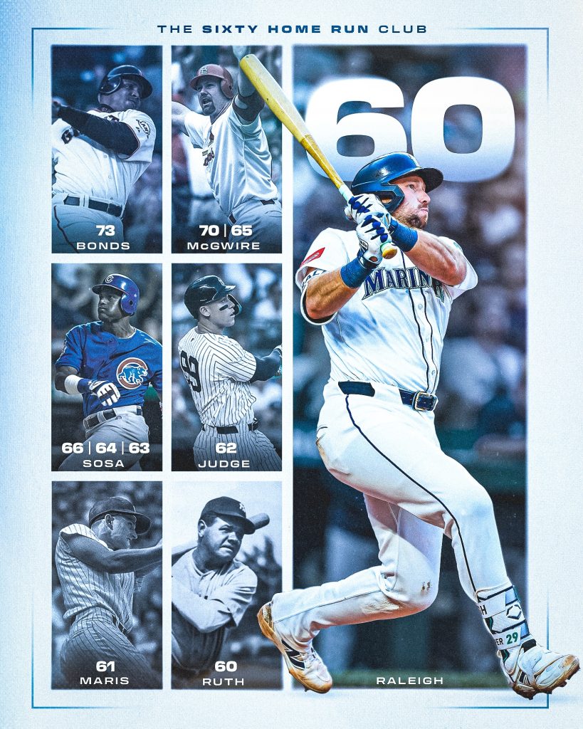El receptor de Seattle se convirtió en apenas el séptimo jugador en alcanzar los 60 en una sola temporada, uniéndose a Sosa (1998, 1999, 2001), Mark McGwire (1998, 1999), Barry Bonds (2001), Roger Maris (1961), Babe Ruth (1927) y Judge (2022), este último con quien se encuentra en una carrera mano a mano por el premio JMV de la Liga Americana de este año.