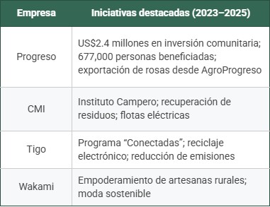Entre las empresas de varios sectores, que han aportado información tenemos las siguientes, sin embargo hay muchas más empresas que están apostando por una RSE con enfoque, dinamismo y motivación.