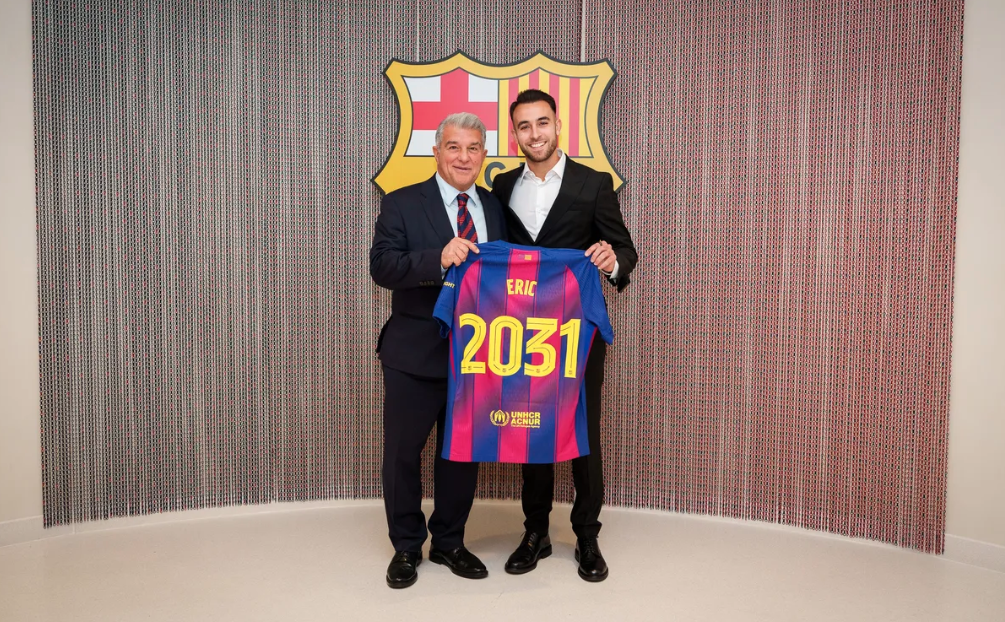 En un día con muchos focos para el polivalente futbolista, Eric ha hecho acto de presencia en las oficinas del Spotify Camp Nou, después del entrenamiento matutino del equipo, para rubricar una renovación conseguida a base de esfuerzo.