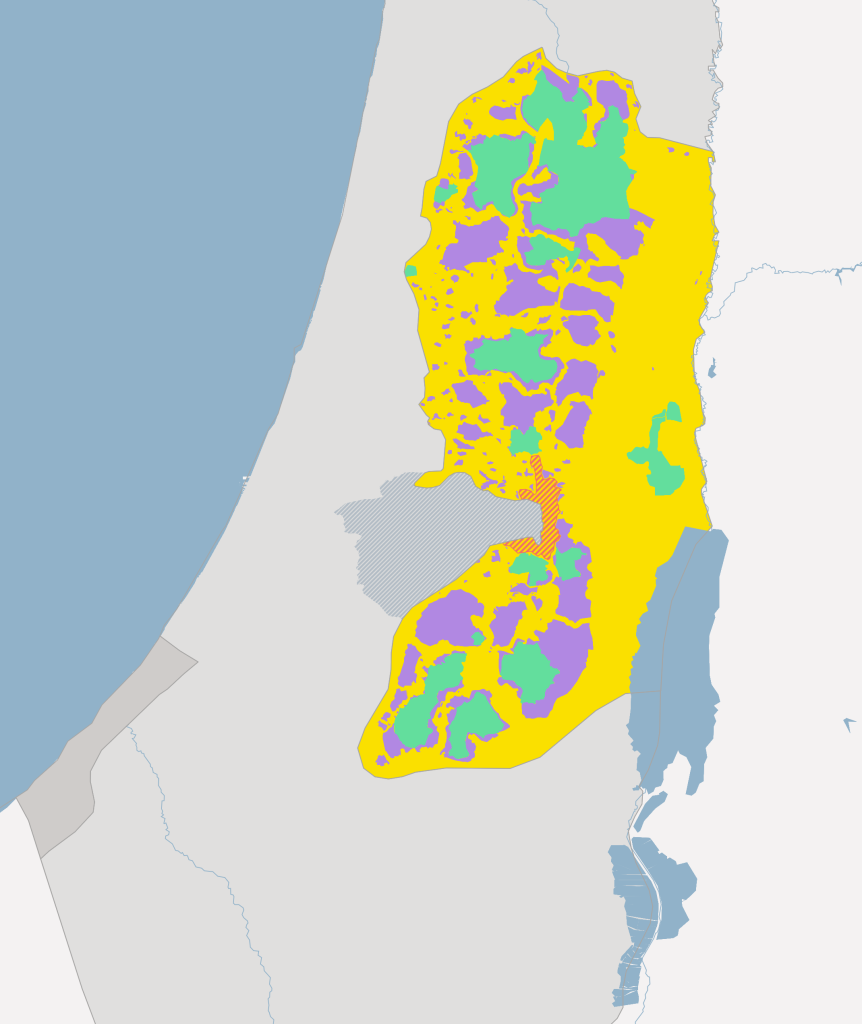 Si bien en la mayor parte de esta zona (la denominada Área C que equivale al 60 % del territorio) Israel posee tanto control militar como civil desde los Acuerdos de Oslo.